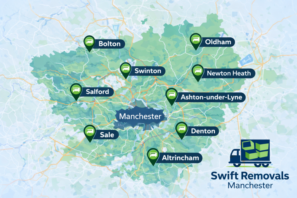 Professional movers• Reliable removals services• Careful furniture handling• Local Manchester knowledge